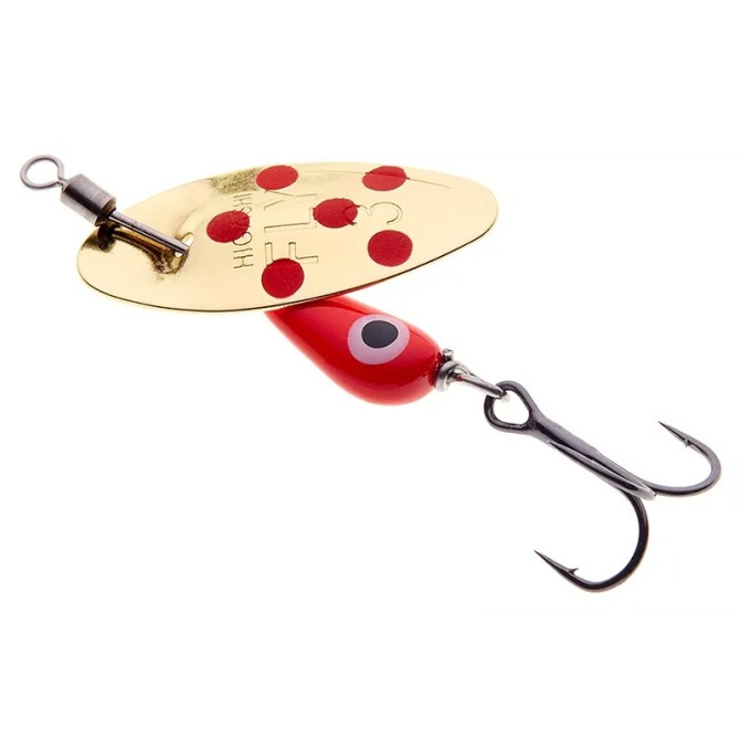 HIGASHI FLY 3гр- вращающаяся блесна, изготовлена по системе «инлайн»- лепесток приманки прикреплен непосредственно на ось блесны, вращаясь вокруг оси лепесток кроме характерной вибрации создает и шумовой эффект, привлекающий рыбу. Имеет ассиметричную огрузку и вертлюжок, что предотвращает закручивание лески. Блесна стабильно работает в любых условиях: как на течении, так и в стоячей воде. И хотя блесна выпускается в первую очередь для ловли различных лососевых рыб, в первую очередь хариуса, форели, ленка и т. д., она очень эффективно работает и по хищнику средней полосы России – окунь, голавль, жерех, щука. Блесна окрашены флуоресцентными красками (светятся в UV лучах). Длина приманки 12мм Длина лепестка 25мм*13мм