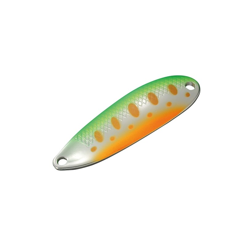 Блесны оснащены одинарным, горячей ковки крючком, японской фирмы FJC, цвет «черный никель», заточка «игольное жало». Приманка изготовлена по системе "Tsuriryoku", имеет особую криволинейную геометрию, полученную Хитоси Хирамото, в результате длительных опытов и тестирования, на небольших реках, ручьях, форелевых прудов Японии. Что такое "Tsuriryoku"? Главная задача такой геометрии, распускать звуковые волны по всем, абсолютно всем направлениям движения блесны. Кроме того, изгибы блесны, позволят ей скользить, не ломая игры, по сильному течению перекатов. «Апстрим» или забросы верх по течению – лучшее применение возможностей блесны D-Sline. Агрессивный твич возможен, но в спокойной глади озера. На течении, эффективны плавные подергивания кончиком спиннинга. Динамика твичинга меняется в зависимости от скорости течения. Обратная сторона блесны обозначена точками удара для хищника: красные Bite Marker и желтые Sight Marker. Желтые точки наиболее заметны для зрения рыб, а красные являются раздражителем, местом атаки хищника. Пропорции "Tsuriryoku", одинаково тонкое тело в передней и хвостовой части изгиба - обеспечивает хорошую баллистику - дальность полета блесны, пробивание ветра и полный спектр динамики движения блесны D-Sline: проводка с минимальной скоростью эффективная игра при любой амплитуде колебаний S-образная форма изгиба, изогнута и к хвосту, с перепадом высот до поднятой передней, позволяет проводку с очень низкой скоростью, по любой глубине, даже на мелководье 15-20 см. передней часть блесны является локомотивом. Скользя в сильном течении, и принимая на себя первый удар, передний изгиб не дает задней части приманки скатиться к хаотичному движению и потерять ритм игры. Задняя часть плавно повторяет след передней части. В слаботекущей воде, при легких подергиваниях кончиком спиннинга, с паузами, сила воды с одинаковым упором бьет по передней и задней части блесны. Блесна полностью раскрывается для атаки, играя каждым миллиметром. Тормозной путь, на паузах, не длинный, блесна начинает плавно «сыпаться» вниз, светясь боками и распуская короткие звуковые волны. Таким образом, баланс является краеугольным камнем блесны D-Sline. на глубине, особенно на ямах после глубоких перекатов, сопротивление блесны будет усиливаться. Использую чуткие спиннинги серии «Troutin Spin» от SMITH, у вас получится прекрасная пара умных «рабочих лошадок», которая расскажет, что твориться в царстве подводном, и которыми можно легко дирижировать в любых условиях. Для большей результативности проводок, не забывайте о сохранении акустического образа приманки. Меняйте динамику и ритм проводки, в зависимости от скорости течения и глубины. Каждый рыболов – это личность, имеющая свой собственный стиль и понимание рыбалки. И все же, когда вы используете блесны D-Sline, прислушайтесь к рекомендациям автора, Хитоси Хирамото. Есть пять особенностей, на которые надо обратить внимание при выборе блесны и стиля проводки в определенных условиях D-Sline длина 3,0см, вес 3 гр., толщина 1,4мм. - баланс маленького веса и приличной толщины, означает быстрое падение блесны в слаботекущей и спокойное воде. Рыбалка на форель на платных прудах, в мелководных местах отдыха рыбы - проводка деликатнейшая. Дайте блесне лениво позаигрывать с отдыхающей форелью. D-Sline длина 3,6см, вес 4 гр., толщина 1,4 мм. - казалось бы не значител