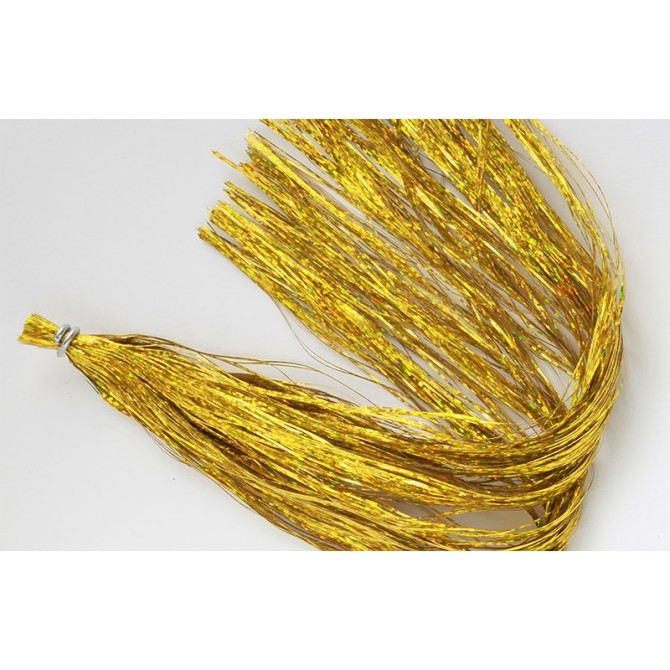 Оригинальный Flashabou, шириной 1/69 ”с трехмерным цветовым эффектом, волокна сложены пополам, для изготовления больших моделей мух. Длина 53 см. Примерно 800 нитей в упаковке.