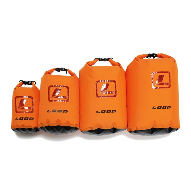 Серия высококачественных водонепроницаемых мешков с системой закрывания Roll top. Мешки изготовлены из ткани 320D нейлон/полиуретан. Имеют модельный размерный ряд 5, 13, 20 и 35 литров. Мешки предназначены для защиты вещей от влаги. Особенностью мешков является уникальный логотип-окно в форме лого "L", который позволяет легко определить какие вещи находятся внутри мешка. Мешки имеют усилительную полосу из прорезиненой ткани, которая создаёт жесткость при закрывании сумки, Duraflex пряжки и кольца. Эти мешки 100% водонепроницаемые, но не стоит забывать что их нельзя оставлять в воде на долгое время и на большой глубине, поскольку система Roll top не предназначена для этого. Цвет: Оранжевый/Чёрный