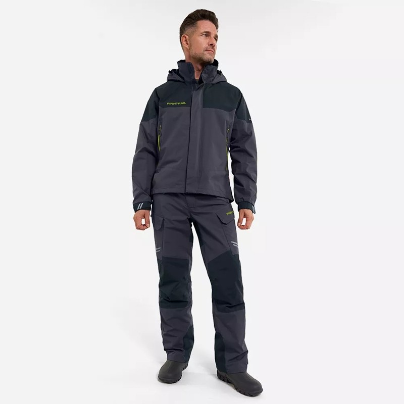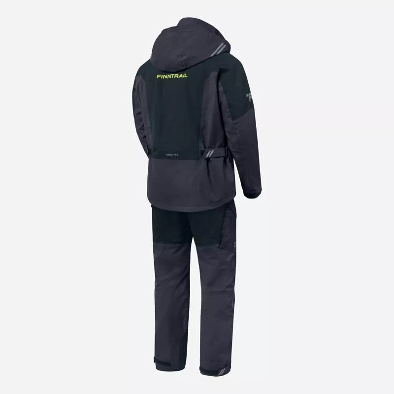 КОСТЮМ FINNTRAIL GT GRAPHITE Обновленный костюм GT предназначен для любителей квадроциклов и езды по бездорожью. Данная модель обеспечивает надежную защиту от влаги и ветра, при этом создаёт полную свободу движений и максимальный комфорт во время активной езды. 2,5-слойный материал RIPSTOP с мембраной HARD-TEX и водонепроницаемостью 12 000 мм на 100% защищают от влаги и ветра. Костюм из такого материала обладает высокой прочностью и устойчив к повреждениям. Пропитка DWR предотвращает впитывание вязкой грязи и влаги, препятствуя появлению на поверхности следов и разводов. Структура ткани позволяет сохранять комфорт в течение 24 часов под проливным дождём. Функциональный дизайн модели объединяет в себе продуманные детали, оригинальный графитовый цвет и фирменный логотип FINNTRAIL. Эргономичный крой брюк и куртки обеспечивает полную свободу движений. Регулируемый в двух плоскостях капюшон позволяет настроить максимально комфортный объём. При необходимости он легко убирается в воротник. Центральная двухзамковая тракторная молния YKK с влагозащитной планкой на липучках обеспечивает прочное соединение и защиту от ветра. Эластичная лента на манжетах и внизу брюк позволяет плотно облегать запястья и щиколотки, что помогает предотвратить проникновение холодного воздуха. Регулировка на липучках предотвращают парусность материала в области талии, что улучшает посадку и обеспечивает комфорт во время активного движения. Высокий пояс снижает давление на живот и обеспечивает более устойчивое положение брюк. На куртке расположено два внешних кармана с влагозащитными молниями YKK Aquaguard и один внутренний на молнии для гаджетов. По правую руку брюки оснащены объёмным карманом с клапаном, что позволяет обеспечить быстрый и лёгкий доступ к необходимым вещам, не отвлекаясь от езды. Комбинированная подкладка с сеткой способствует циркуляции воздуха. Страховочные кольца надёжно фиксируют чеку безопасности квадроцикла. Светоотражающие элементы обеспечивают безопасность в ночное время суток.