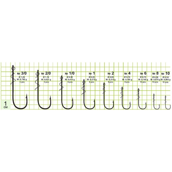 Крючок класса "MEDIUM" - оснащённый пружинкой-штопором на цевье. Данная система дополнительной фиксации приманки из мягкого силикона способствует увеличению срока использования последней. Существенно снижает степень поворота насадки вокруг цевья. Крючок имеет ухо широкого диаметра, что способствует более естественной игры приманки в оснащении шарнирных монтажей. Имеет высококачественное антикоррозийное покрытие BN.