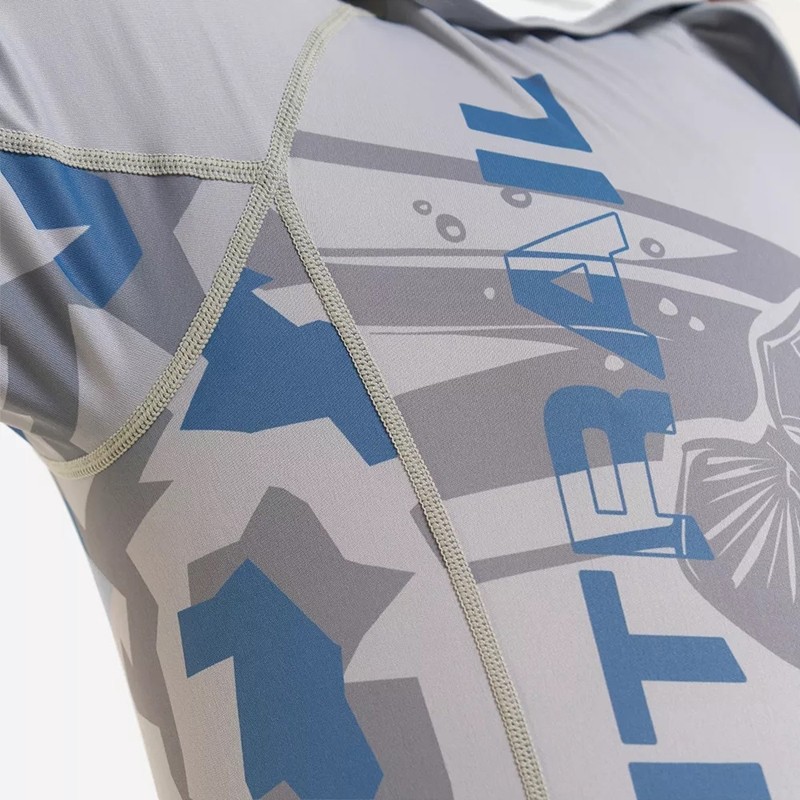 ЛОНГСЛИВ FINNTRAIL WAVE BIG FISH Прекрасный вариант для поклонников рыбалки или любителей активного отдыха на природе. Новый лонгслив с капюшоном надёжно защитит от солнца, ветра или назойливых насекомых во время прогулок по лесу или в ожидании клёва. Дышащая и быстросохнущая ткань с коэффициентом защиты от ультрафиолета UPF 50 укроет от воздействия вредного солнечного излучения. Капюшон создаст дополнительную защиту от ветра и обеспечит комфортную посадку. Материал лонгслива изготовлен с использованием технологии от насекомых, а также обработан антибактериальным покрытием, препятствующим появлению неприятных запахов. Дизайн модели сочетает в себе классический серый цвет с элементами камуфляжа, уникальный принт для поклонников рыбалки с фирменным логотипом FINNTRAIL и удобные, продуманные детали. Например, под манжетой предусмотрена эластичная петля для большого пальца, которая позволяет фиксировать рукав на запястье, предотвращая его подъем или скатывание во время активных движений. Наличие плоских швов предупреждает натирание и раздражение кожи во время активных тренировок или поездок. Рукав реглан обеспечивает оптимальную посадку и не ограничивает движения рук.