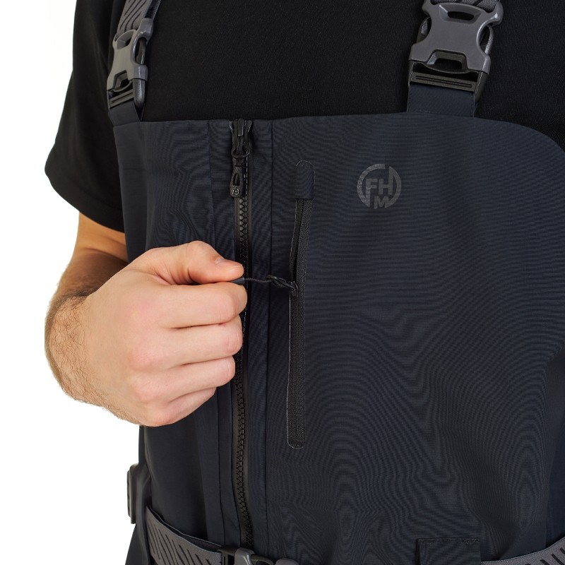 Высокие брюки Guard V2 для лодочной рыбалки из ткани с высокотехнологичной мембраной Dermizax (Toray). Вам будет максимально комфортно даже в неблагоприятных погодных условиях. Предусмотрены карманы для необходимых вещей, которые должны быть всегда под рукой, и в то же время под защитой от дождя и влаги. Конструктивные особенности: - 2 нагрудных кармана - Эластичные регулируемые подтяжки - Регулировка штанин по низу - 2 боковых накладных кармана с клапаном на магнитах - Ластовица по шаговому шву - Накладки из износостойкой ткани по низу - Анатомический крой колена - Влагозащитные молнии по низу в боковых швах Состав: - Состав материала верха: 100% полиамид - Плотность ткани г/м.кв: 137 Вес: 0,95 кг Технологии: - Мембрана 3 слойная Toray Dermizax - DWR - Водонепроницаемость 20 000 - Паропроводимость 10 000 - Mолнии YKK