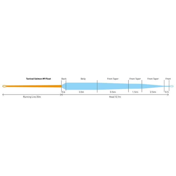 Шнуры SDS Tactical Salmon это тип шнуров предназначенный для рыбалки в среде, где техника подачи мушки имеет решающее значение для успешной ловли. Конфигурация конуса шнура SDS Tactical Salmon оптимизирован для техник заброса "Overhead" так и для техник "Spey cast". Голова SDS Tactical Salmon и раннинг интегрированы друг с другом, то есть не имеют петлевого соединения . Это позволяет легко управлять шнуром выполняя мендинги и задавать правильную скорость движения мухи на свиме.