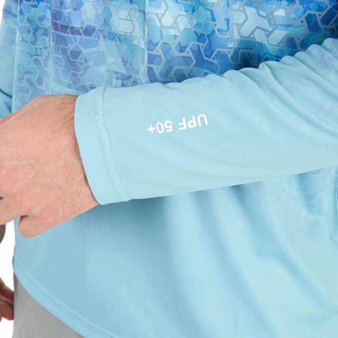 Футболка Mark Hoodie изготовлена из специального материала с фактором защиты UPF 50+. При производстве к волокнам добавляется ингредиент, ингибирующий ультра-фиолетовое излучение. Такая технология обеспечивает более длительный эффект защиты от УФ-излучения по сравнению с технологией пропитки готового материала. Модель Mark Hoodie дополнена капюшоном, что обеспечит дополнительную защиту от солнечных лучей. Конструктивные особенности: - Крой реглан - Плоские швы - Петля для большого пальца - Вес 0,21 кг Состав: - 100% полиэстер Технологии: - UPF +50