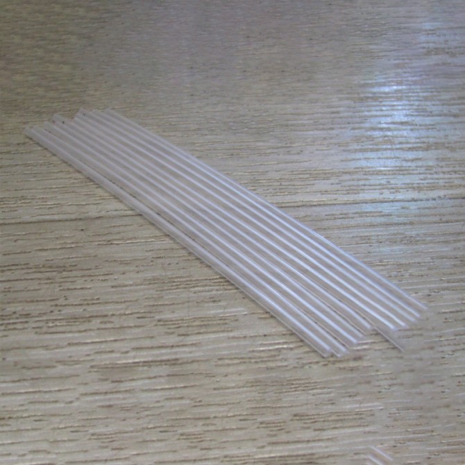 Жесткая пластиковая трубка для изготовления лососевых мушек в стиле Sunray. Толщина 2.5mm, длина 200mm, количество в упаковке 15шт