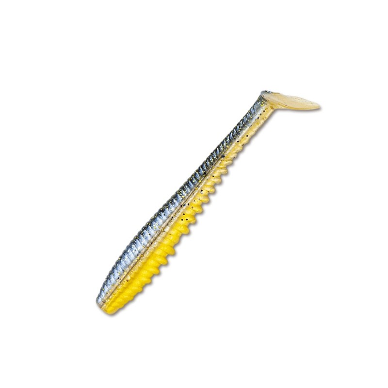 Pontoon21 Homunculures Awaruna Dun — тоньше и деликатнее, чем «классика» и Awaruna EVO, но при этом чуть более брутальная, чем Pontoon21 Ratta. И при сохранении практически одинаковых с «классикой» пропорций хвостовой лопасти («пятки») виброхвоста, она и смотрится крупнее относительно корпуса, и играет более активно на небольших скоростях проводки. Активная игра даже при медленной проводке позволяет применять Awaruna DUN в случаях, когда важны две составляющие: заметные колебания и небыстрое перемещение приманки в воде. Такое особенно бывает востребовано, при ловле равномерной или волнообразной проводкой — особенно в варианте «пелагического джиггинга». Тогда не очень широкий профиль, подвижность и заметность Awaruna DUN играют на руку рыболову: щука (а это основной объект такой рыбалки) атакует активную приманку агрессивно. А гибкость корпуса банально снижает число пустых поклевок. Пропорции корпуса Pontoon21 Homunculures Awaruna Dun позволяют использовать для оснащения широкий ассортимент офсетных крюков с различной глубиной поддева. Неогруженная Awaruna DUN на офсетном крючке демонстрирует прекрасную дальность заброса и эффектную игру на простой равномерной проводке: приманка способна извиваться по-змеиному всем телом благодаря импульсам, передаваемым от хвостовой «пятки», расположенной под специально подобранным углом к телу (отличным от угла «пятки» у Awaruna EVO). Такое поведение больше характерно для крупных увесистых силиконовых свимбейтов, однако даже относительно небольшие модели Awaruna DUN длиной 4.5 дюйма уже проявляют «свимбейтовый» характер. А 5.5 — тем более. «Пятка» хвоста движется свободно и достаточно энергично, а тело сохраняет своё змеевидное движение даже при тяжелой огрузке. Тип колебаний и водных возмущений Awaruna DUN отличаются от производимых как Awaruna EVO, так и «классикой» семейства. Это обеспечивает рыболовам больше возможностей подстроиться под конкретную активность рыбы на конкретном водоеме. Когда вы или хищник срежете хвостовую «пятку», Awaruna DUN превратится в приманку, похожую на слаг, но с дополнительной функциональностью: подвижность тела, ребристость корпуса приманки создают отличающийся от многих жестких слагов рисунок игры.
