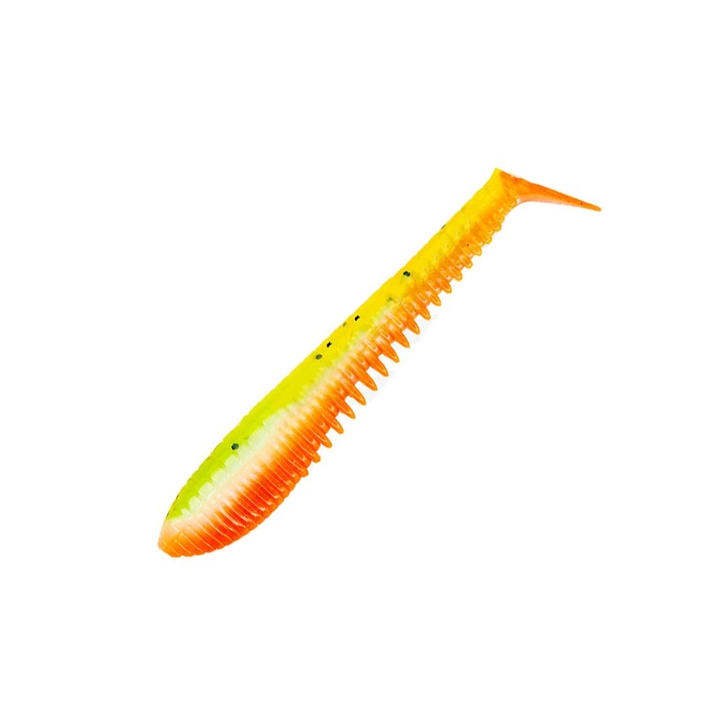 Awaruna Evo - это самая массивная серия семейства Awaruna, демонстрирующая, тем не менее, отличную дистанцию заброса, на который вес оснастки влияет незначительно. Пропорции частей тела, диаметры хвоста, размеры и углы хвостовых лопастей, свойства материалов – все детали стали единым целым, и дальность заброса, даже с неогруженными приманками, очень высока, а сам заброс стабилен и точен. Допустимы любые виды оснастки. Awaruna Evo имеет внутренний канал для направления цевья офсетного крючка, спинной разрез, чтобы прятать его жало, а также удлиненные боковые углубления в качестве направляющих для внешней оснастки с двойным крюком (двойник снаружи сжимает полый внутренний канал, что ещё более надёжно фиксирует его на теле приманки). Пропорции тела позволяют использовать оснастки с тройниками, сохраняя гибкость и активность приманки. Неогруженная Awaruna Evo с офсетным крючком демонстрирует отличную дистанцию заброса и прекрасную игру даже при деликатных движениях удилища; у неё есть собственная игра на прямой проводке, как у всех пластиковых приманок Pontoon 21. Её впечатляющий роллинг достигается за счет импульсов, передаваемых телу движениями хвостовой пятки, расположенной под определённым углом к телу. Awaruna Evo на перегруженной оснастке сохраняет роллинг на том же уровне. – «пятка» хвоста чётко движется в горизонтальной плоскости слева направо; такие движения хвоста и роллинг тела создают хорошо заметные возмущения воды, которые распространяются на большое расстояние. Полевые испытания подтвердили, что такие колебания отлично привлекают хищников, особенно континентальных щук. – Когда вы или хищник срежете хвостовую «пятку», Awaruna EVO станет не просто слагом, скорее, превратится в «Нечто», способное удивить вас своим поведением.